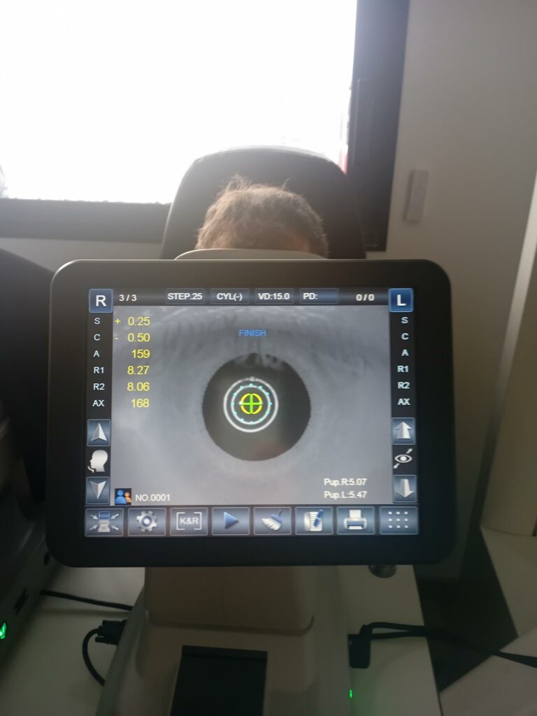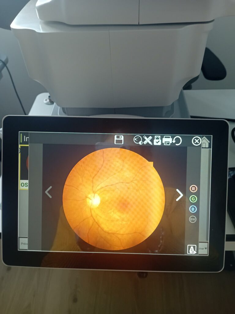 Si vous souhaitez une ordonnance lunettes, je réalise un examen de vue, une photo de la rétine (photo du fond d’oeil) et prends la tension oculaire, puis le tout est envoyé à un ophtalmologue qui rédige un bilan et vous envoie l’ordonnance. Il vous reçoit en urgence en cas de besoin.